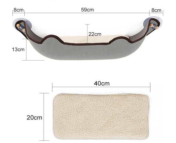 A wrapped suction cup cat hammock for winter and summer