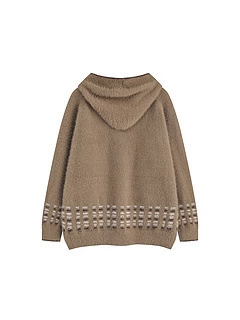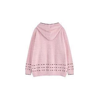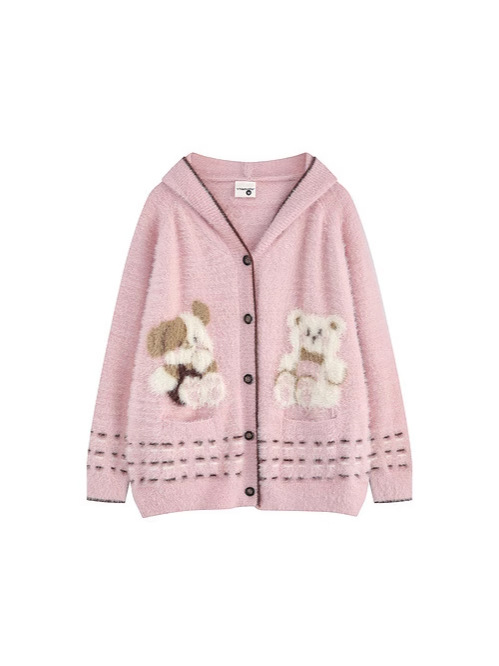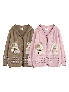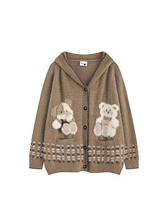 Bear Jacquard Hooded Knit Cardigan Female Loose Sweater Coat