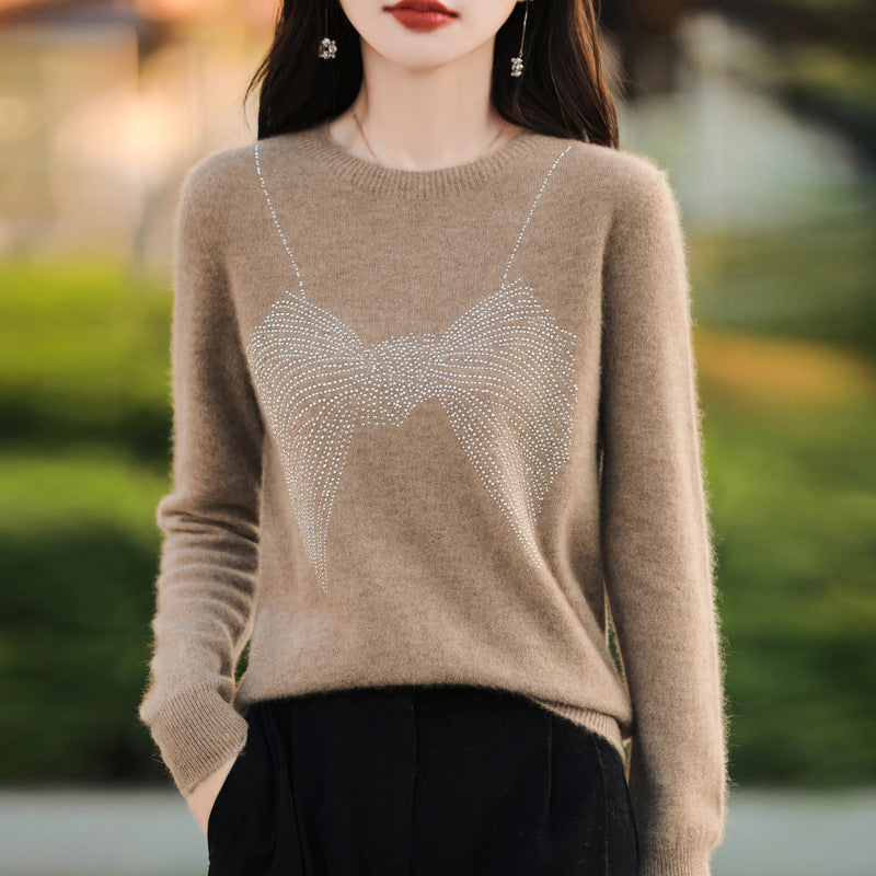 Chic Rhinestone Bow Design Top For Women