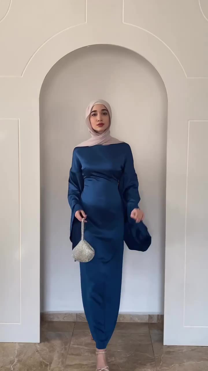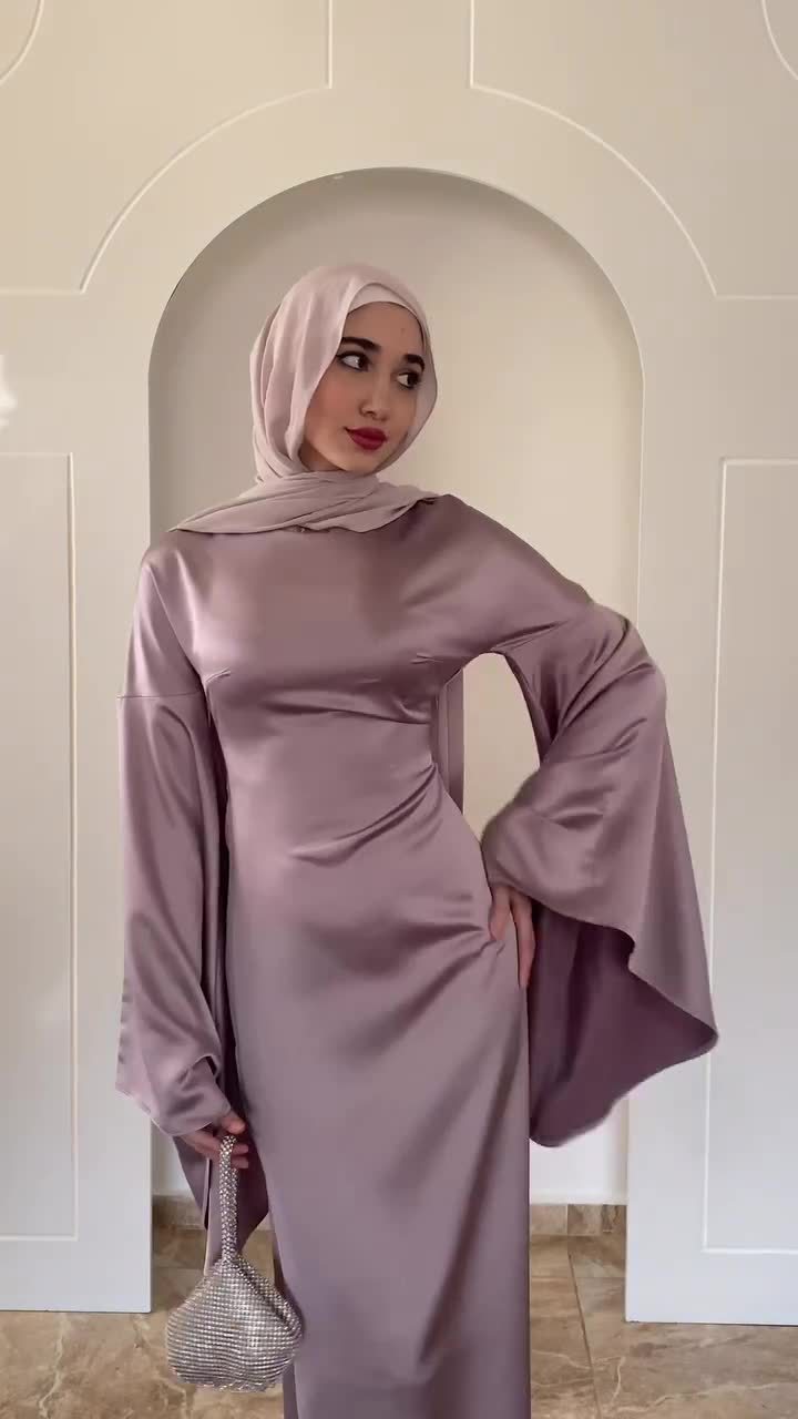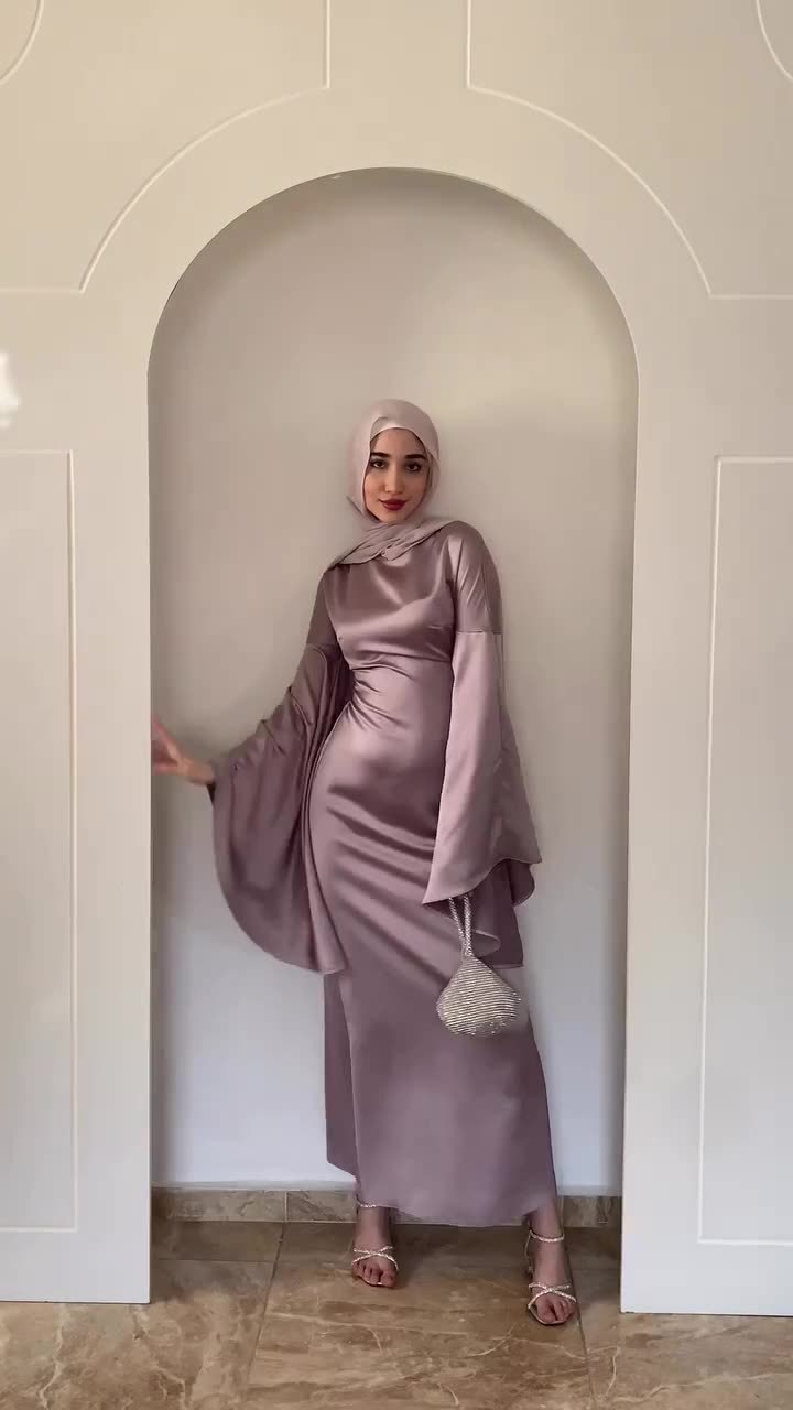 Fitted-waist Figure-flattering Satin Sheath Dress With Flared Sleeves In A Solid Color For Women