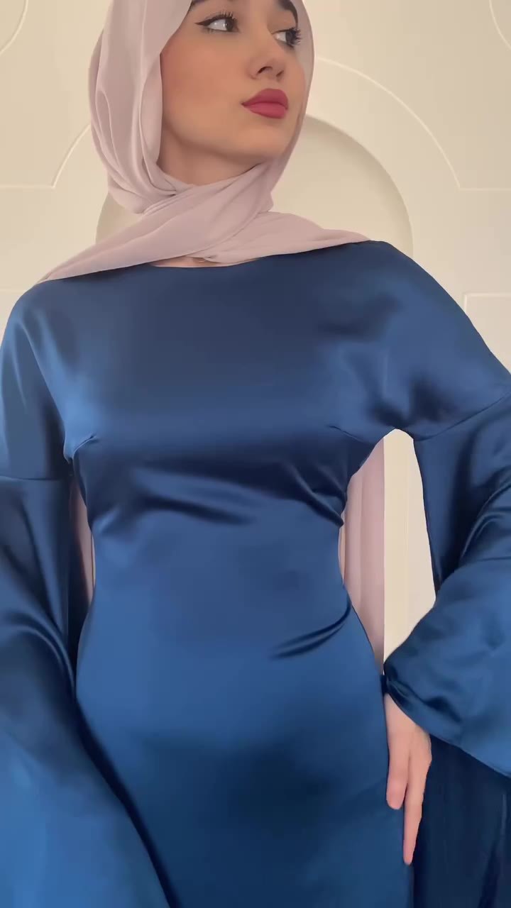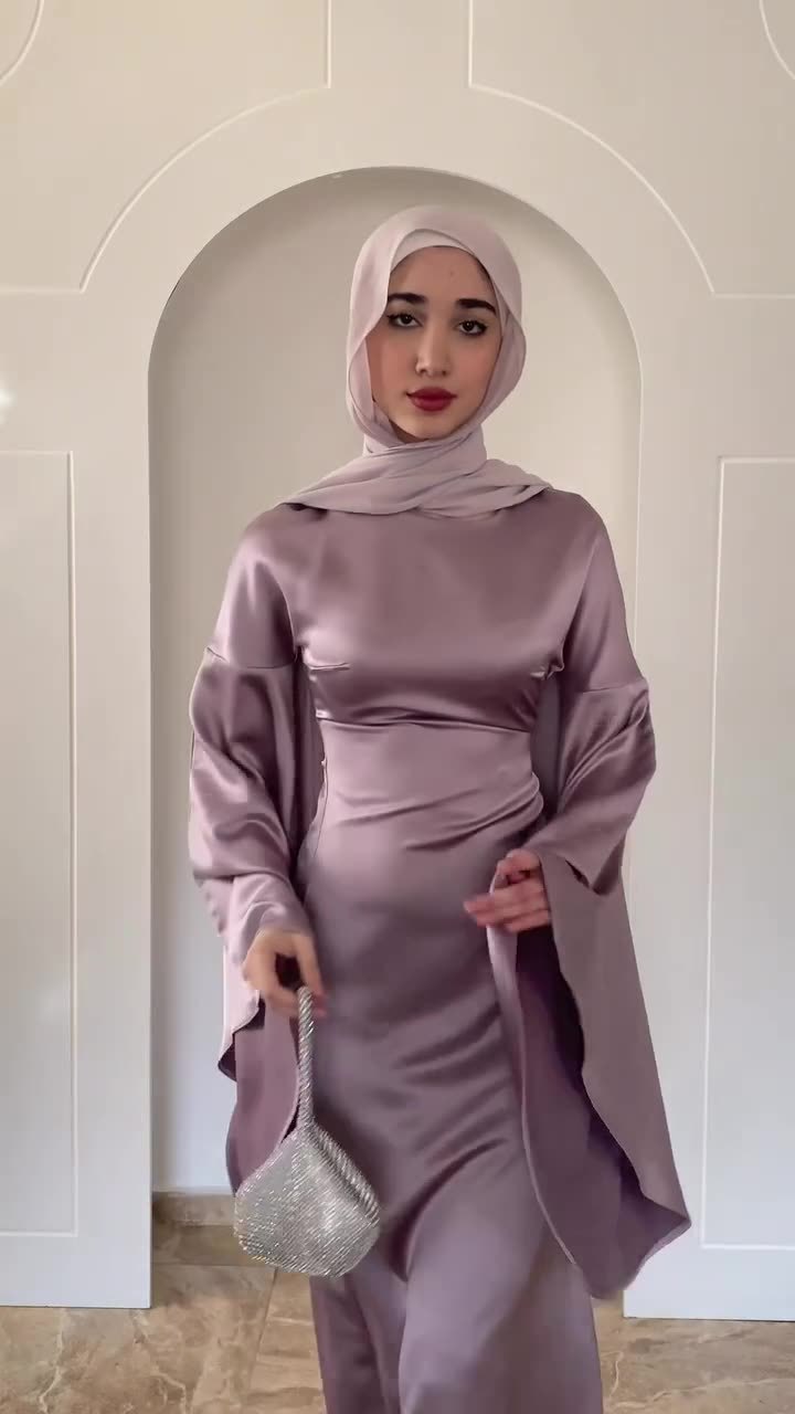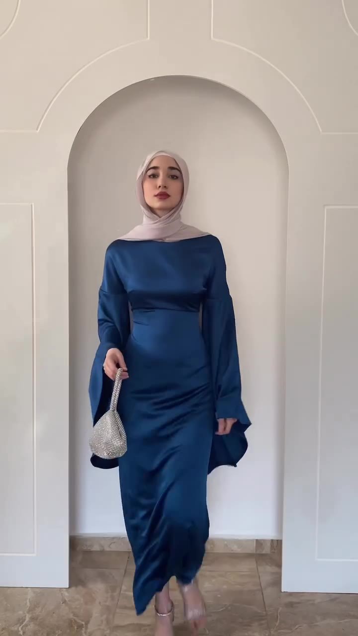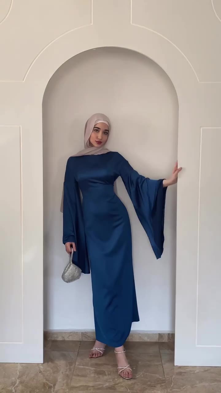 Fitted-waist Figure-flattering Satin Sheath Dress With Flared Sleeves In A Solid Color For Women