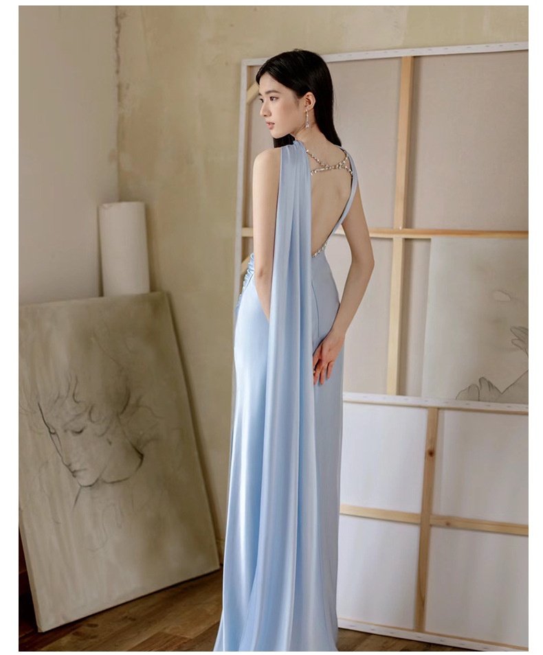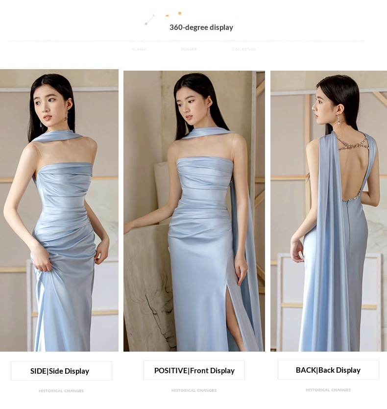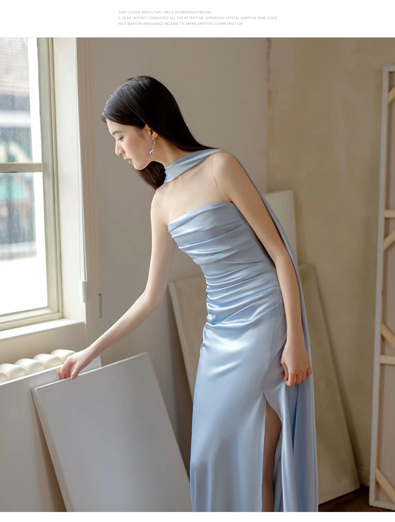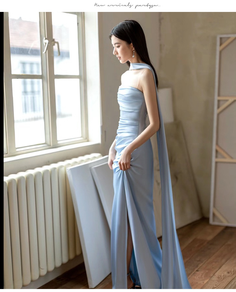 High-end Luxe Yet Understated Blue Strapless Evening Gown For Women
