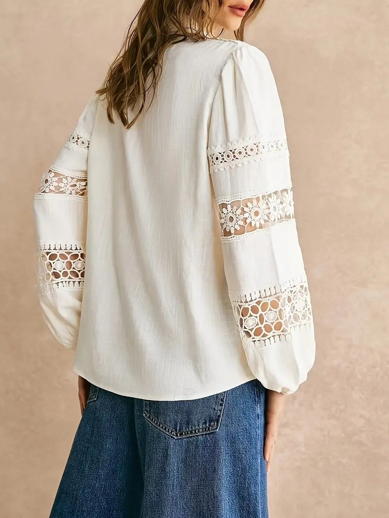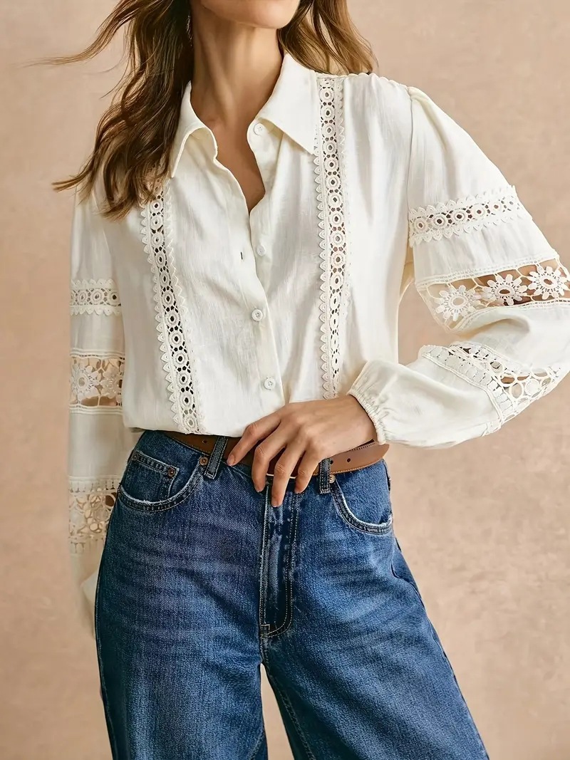Lace-trimmed Openwork Long-sleeve Shirt With Patchwork Details