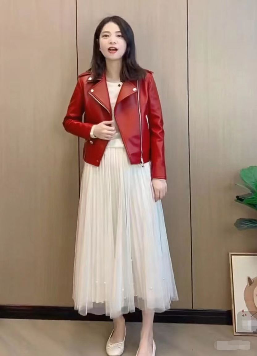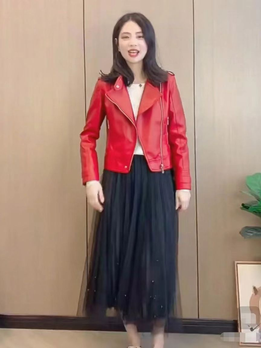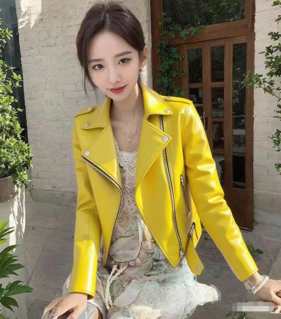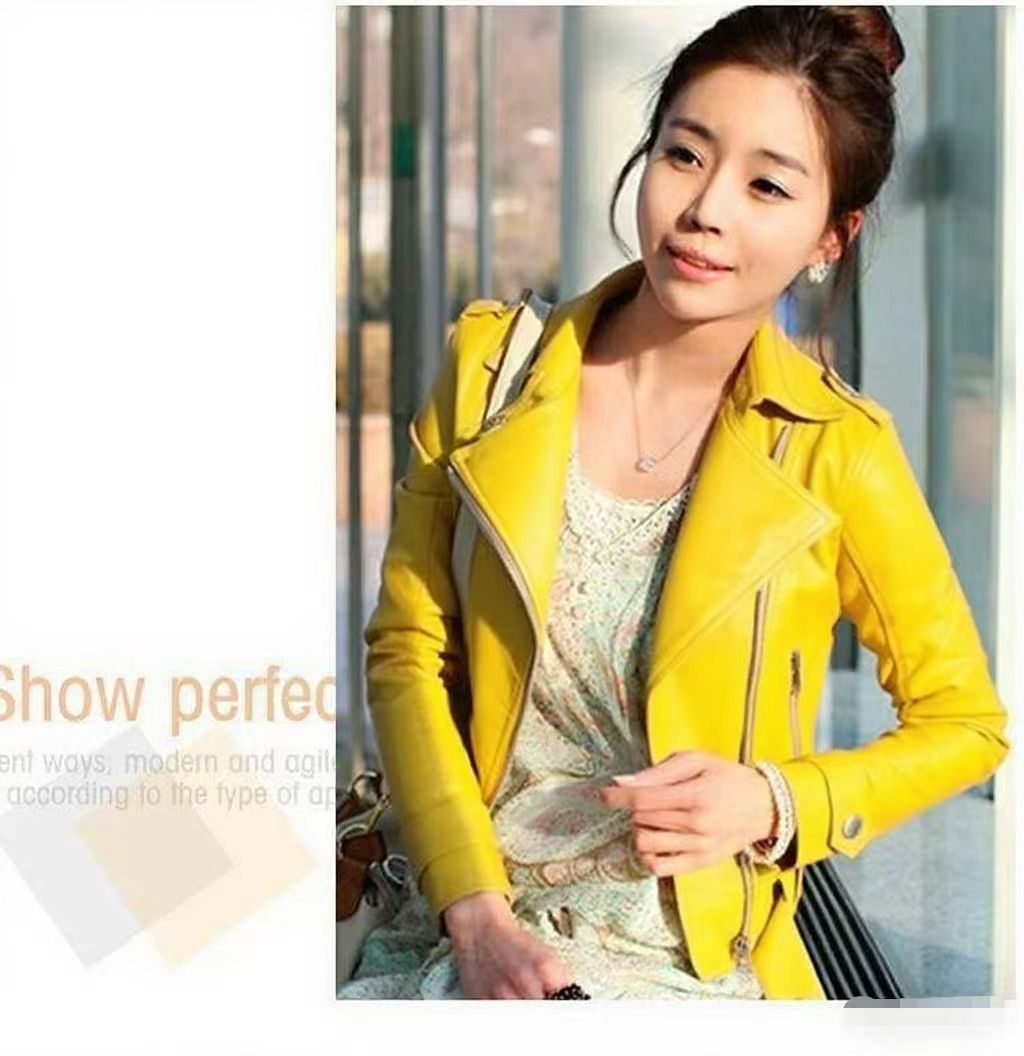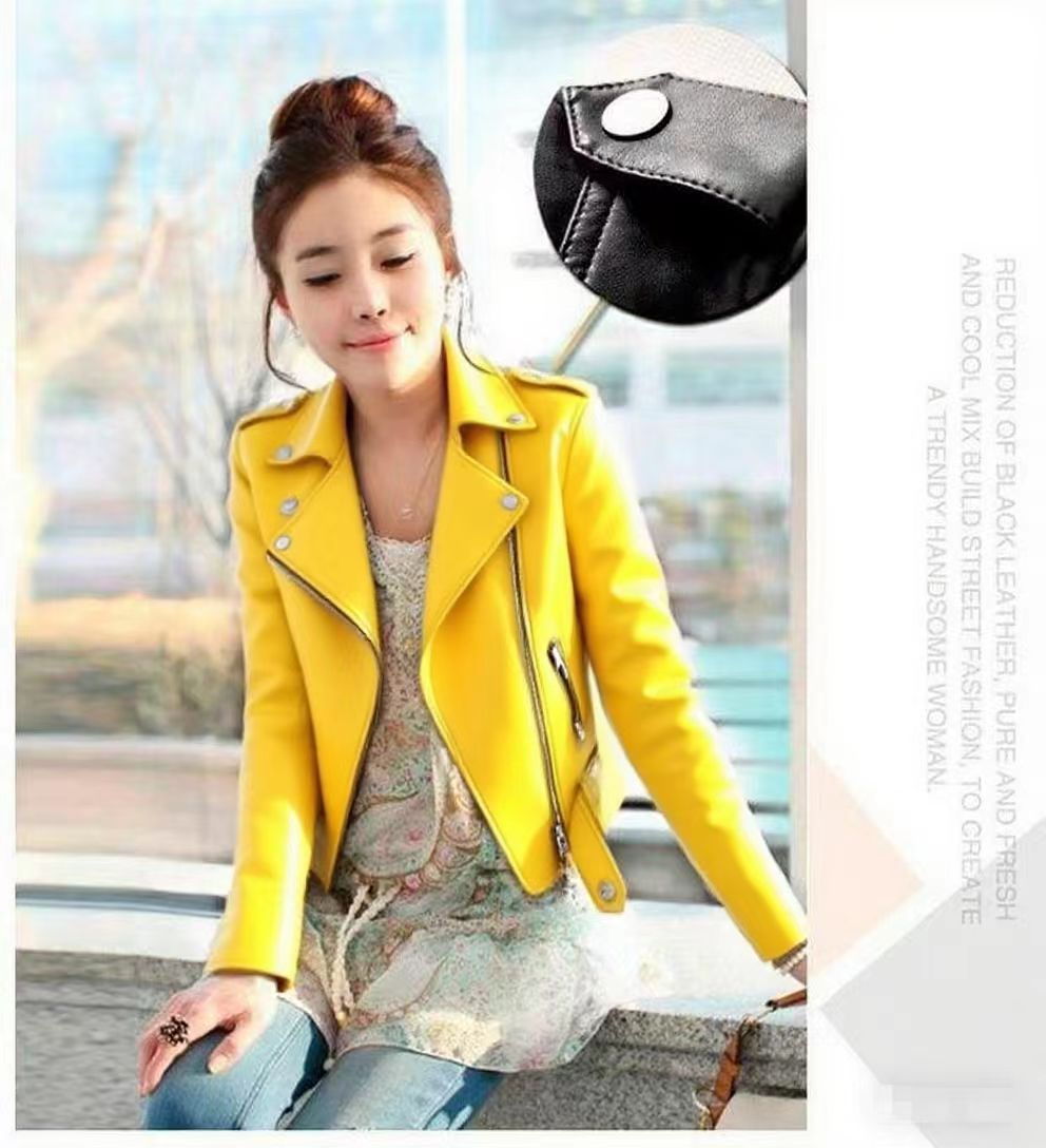 Stylish PU Leather Short Coat With A Stand-up Collar