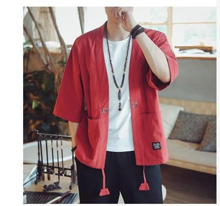 Three-quarter sleeve cardigan Chinese style Tang suit young men's kimono jacket Dao robe men's Hanfu retro trend sun protection clothing