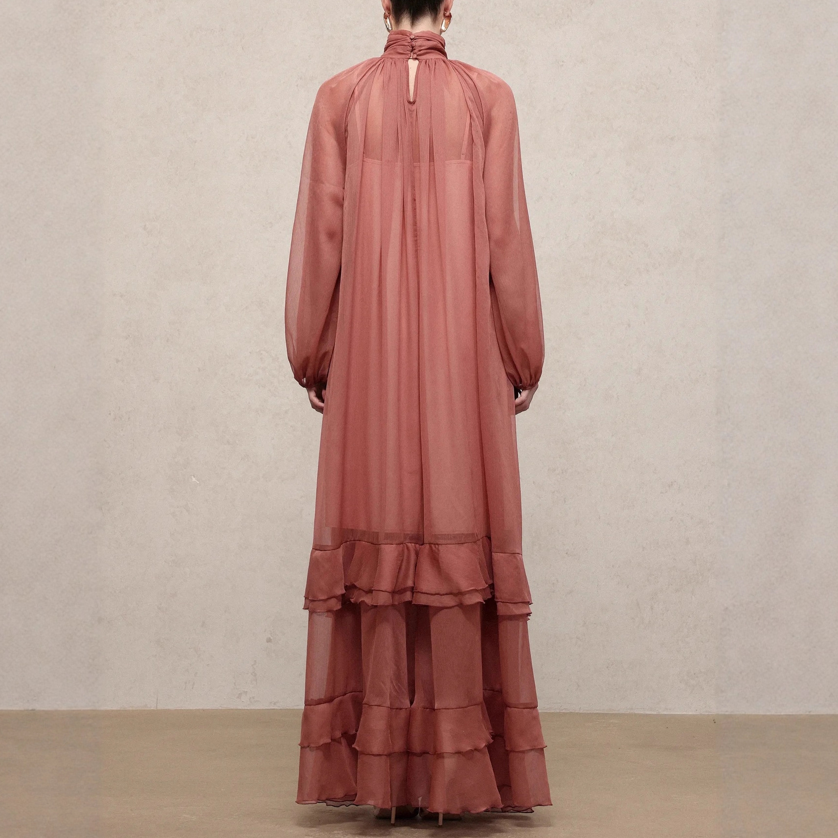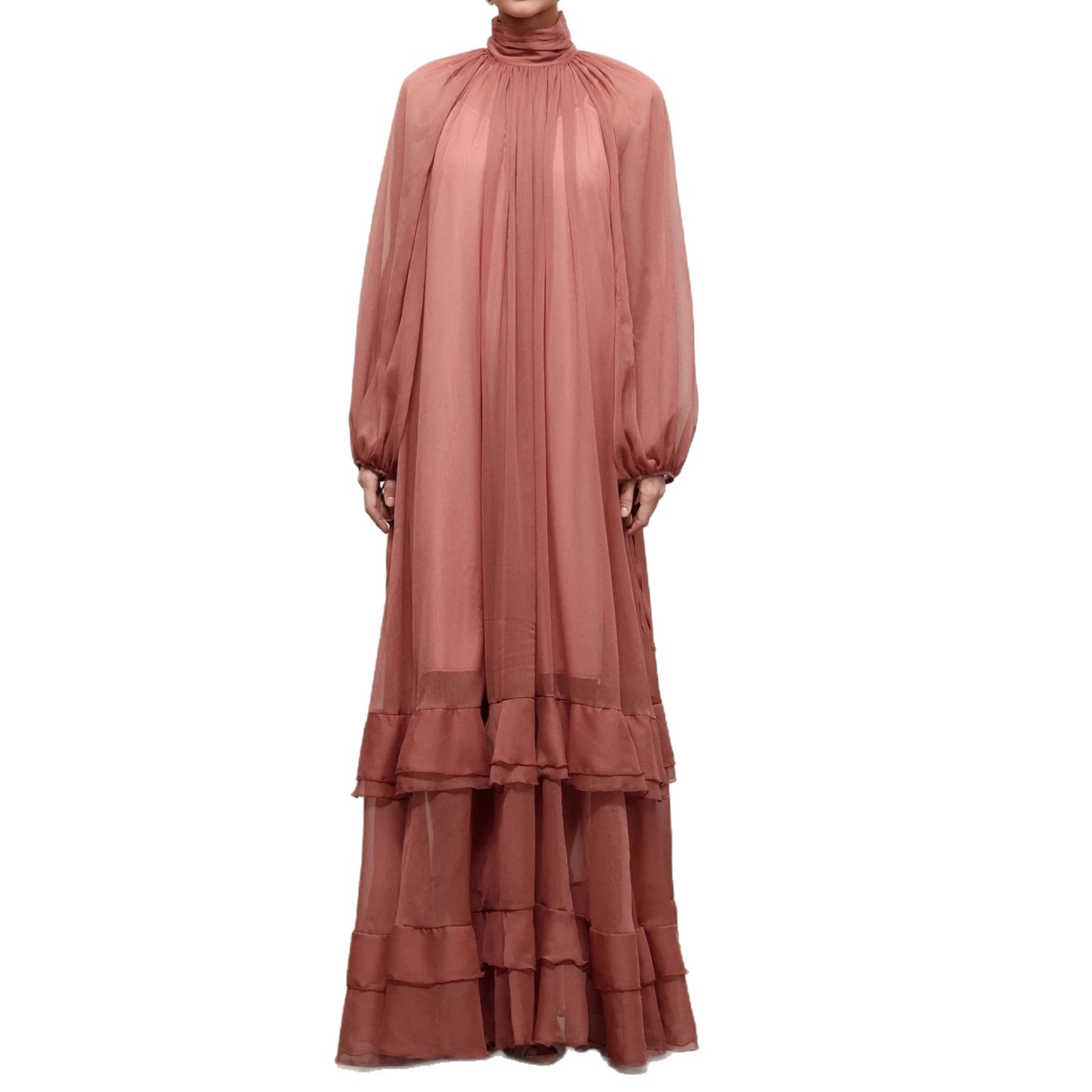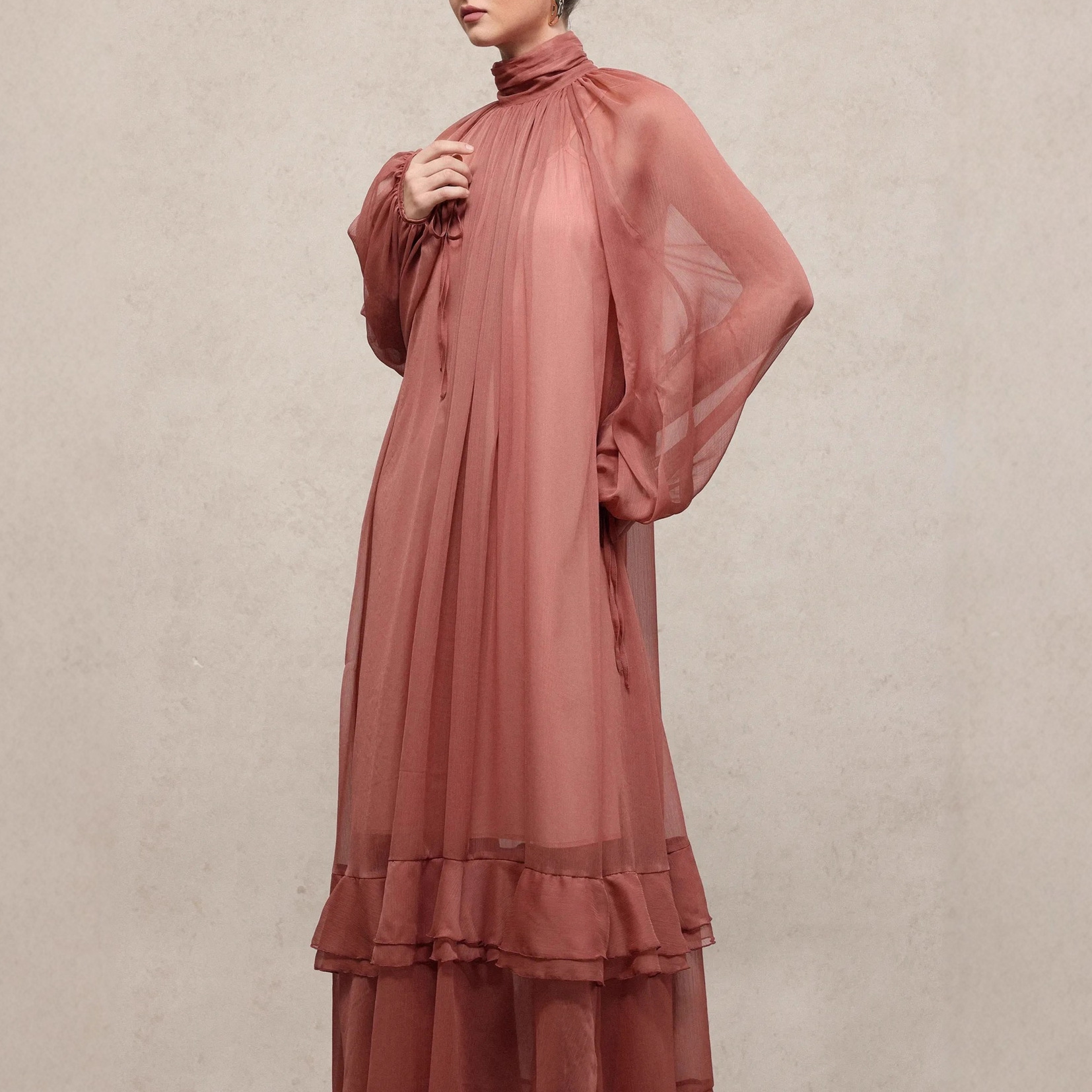 Womens Fashion Ruffle-Trim High-Neck Long-Sleeve Dress