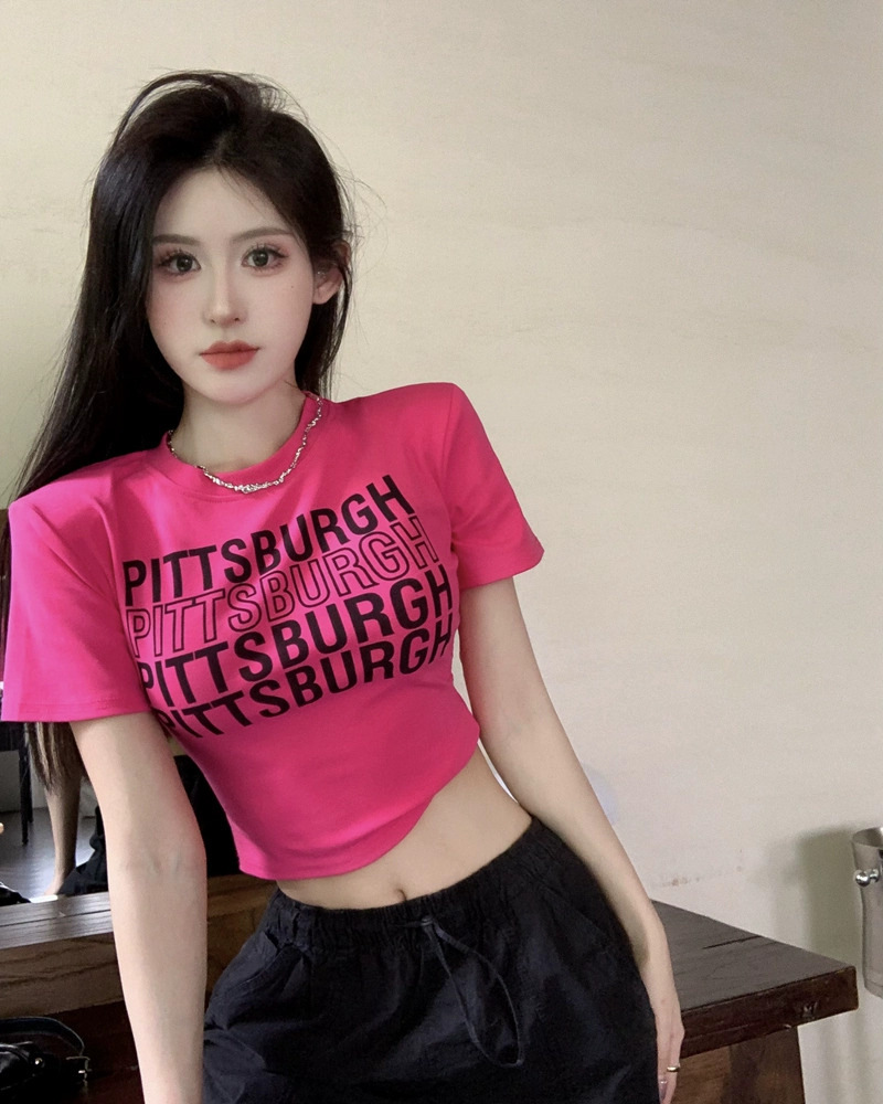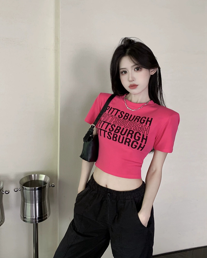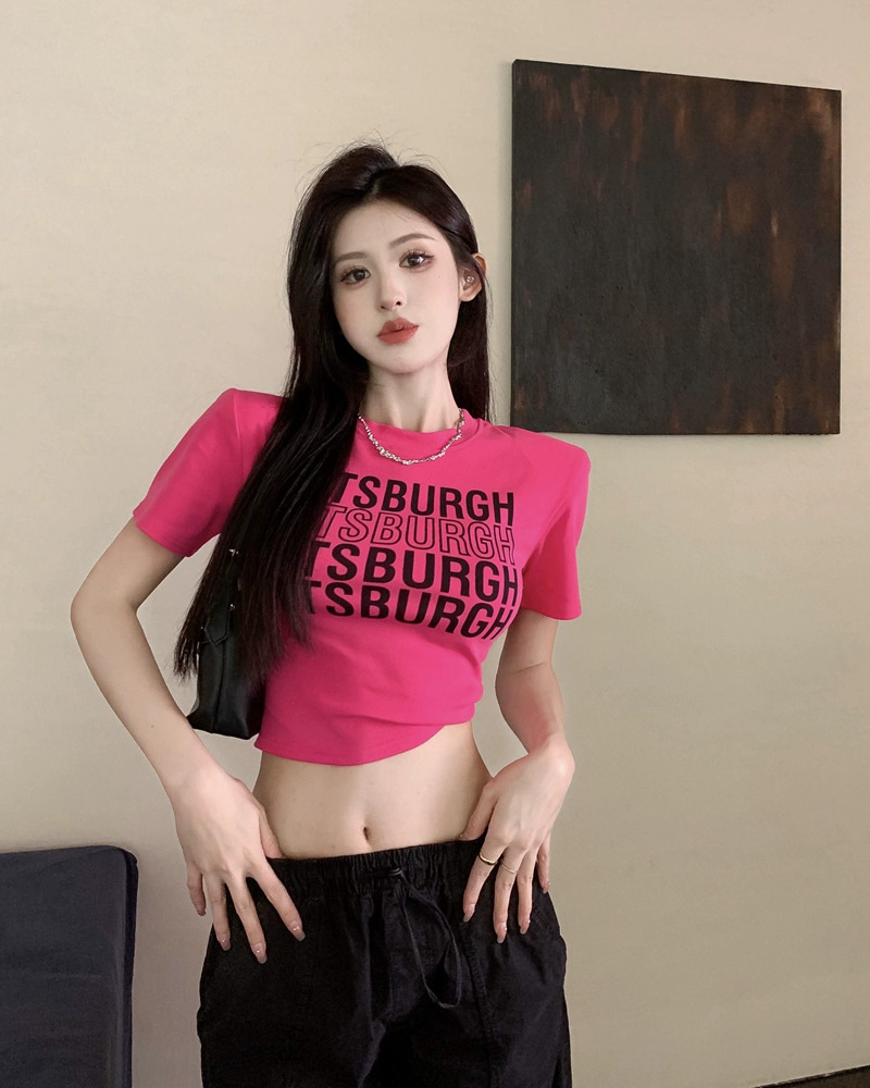 Cropped Rose-red Top That Flatters Your Figure And Creates A Slimming Look