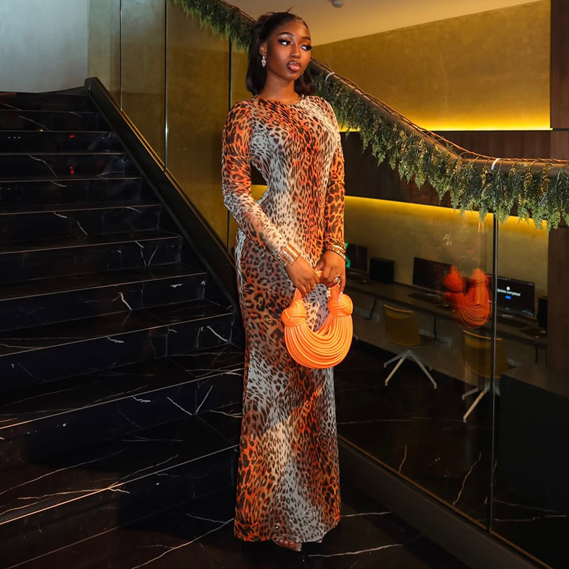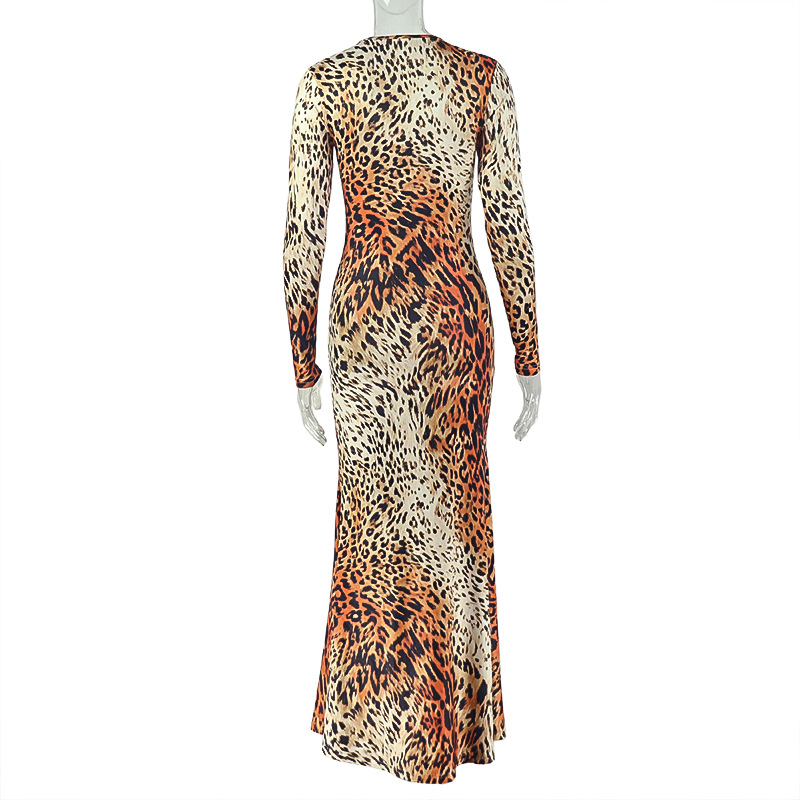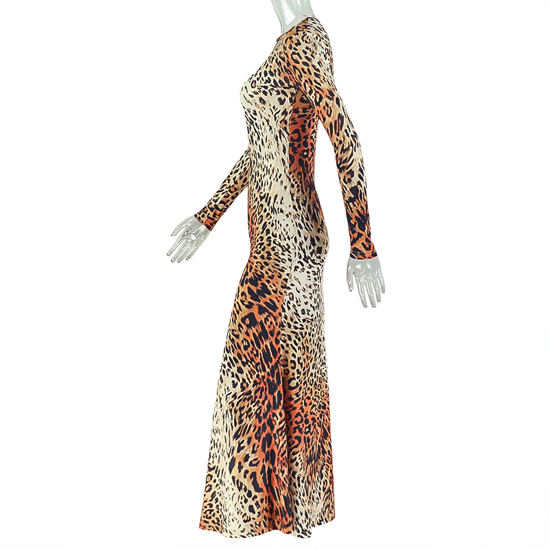 Elegant Close-fitting Dress With A Round Neck And Long Sleeves
