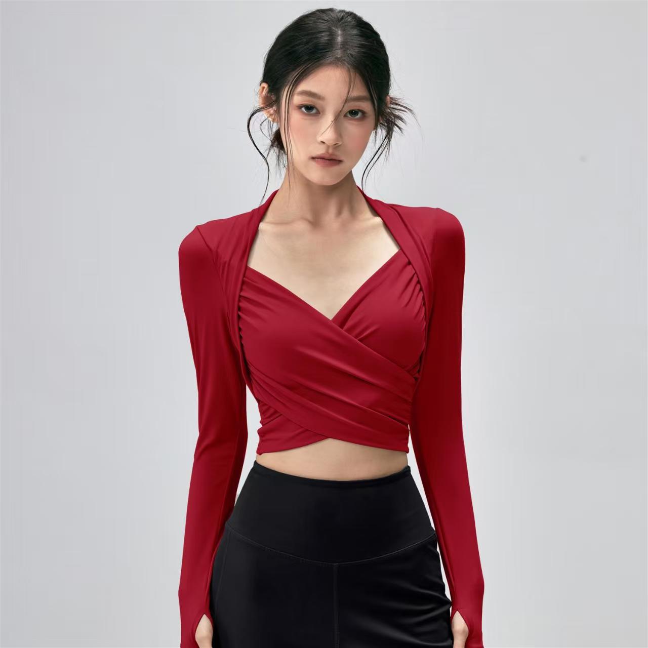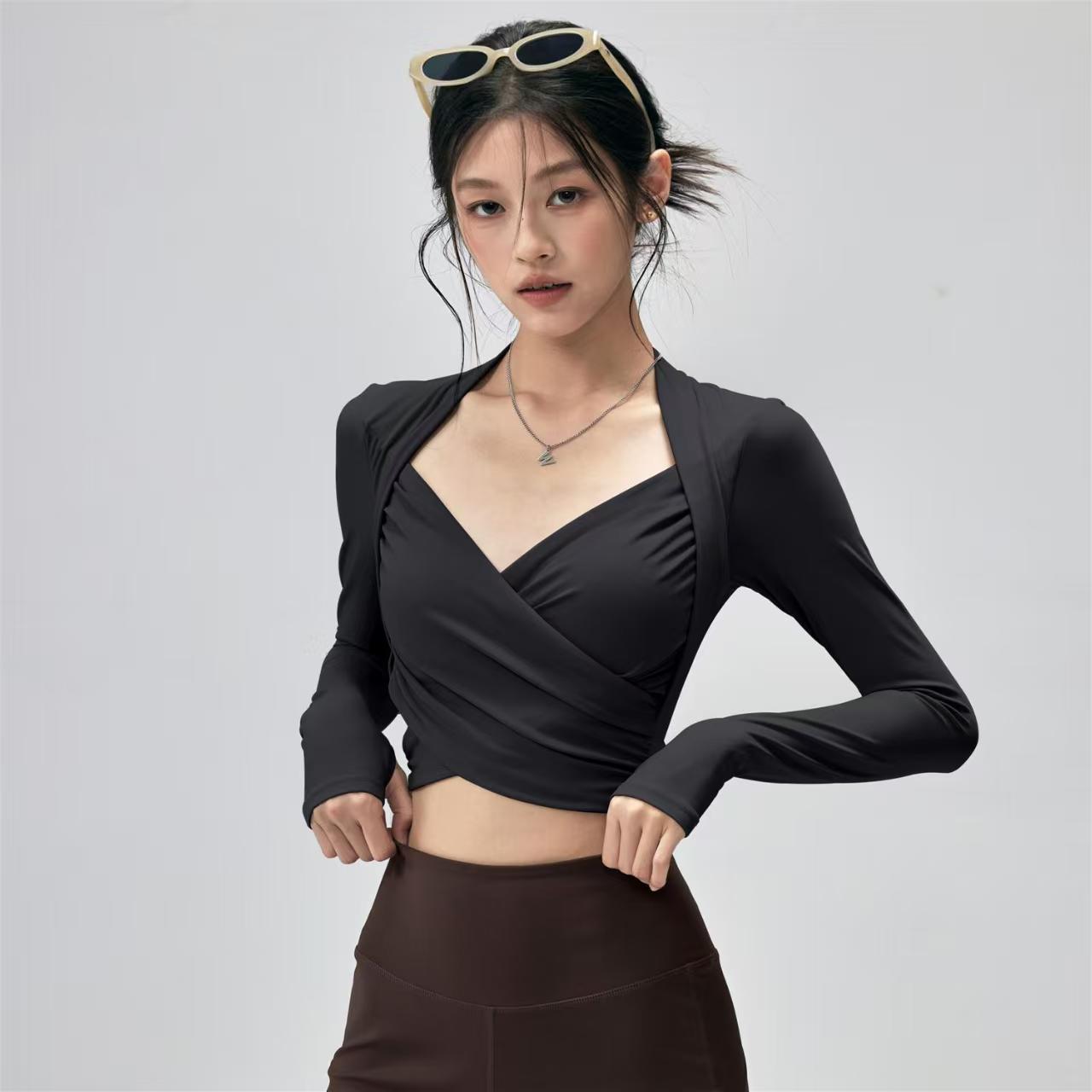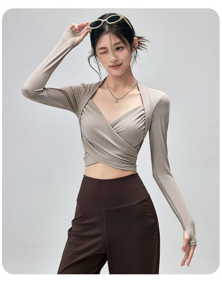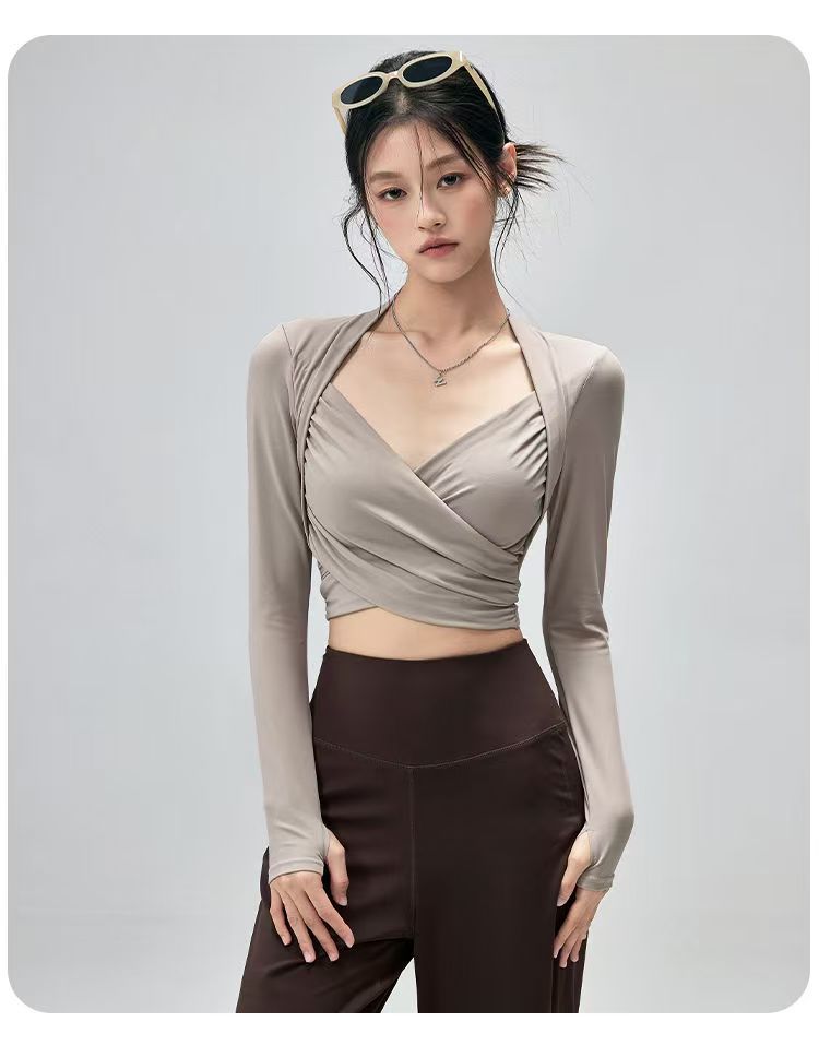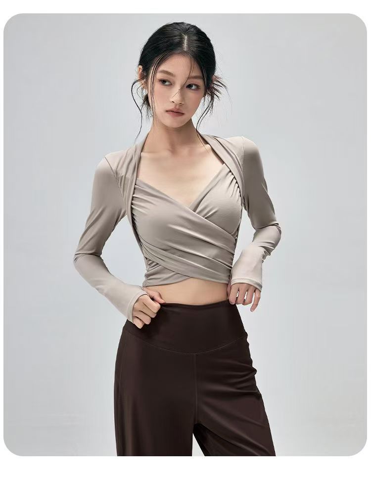 Fitness Top With Chest Pads Yoga WearTight-fitting Long-sleeve Activewear