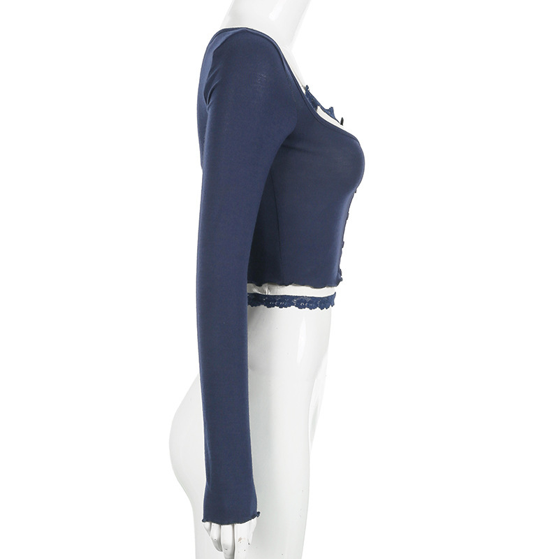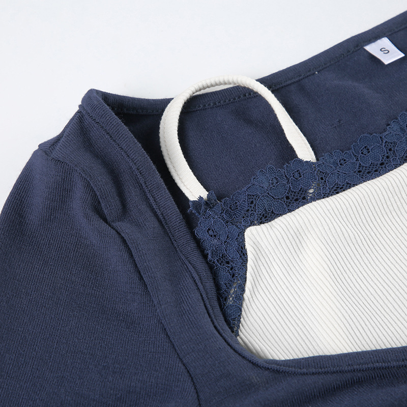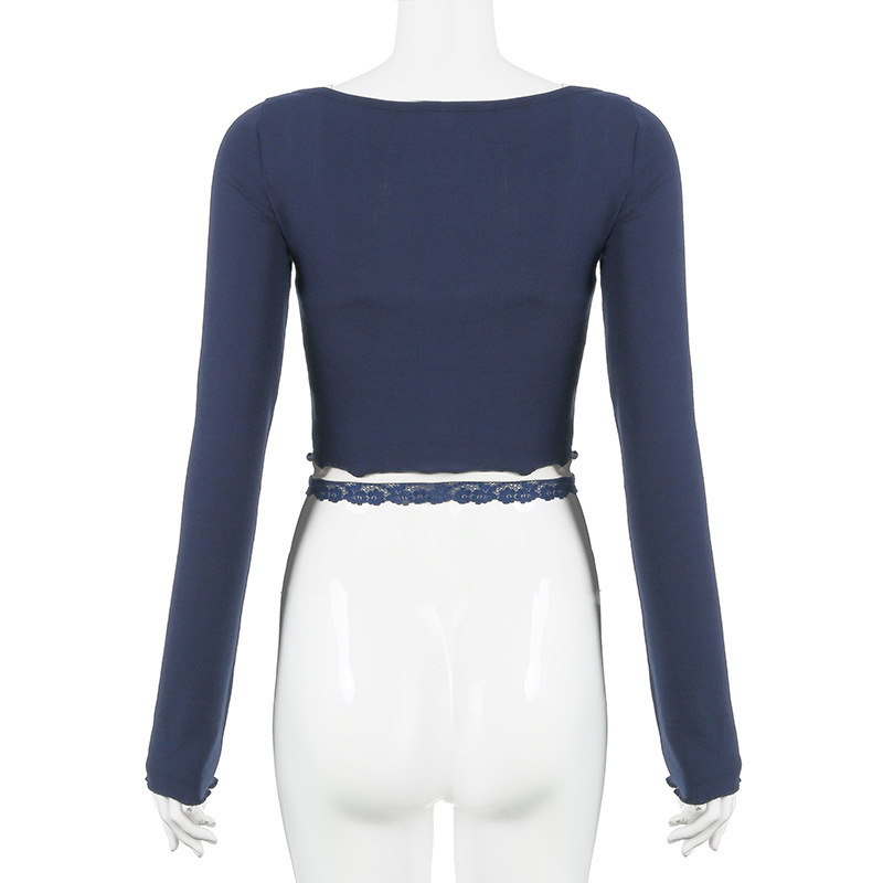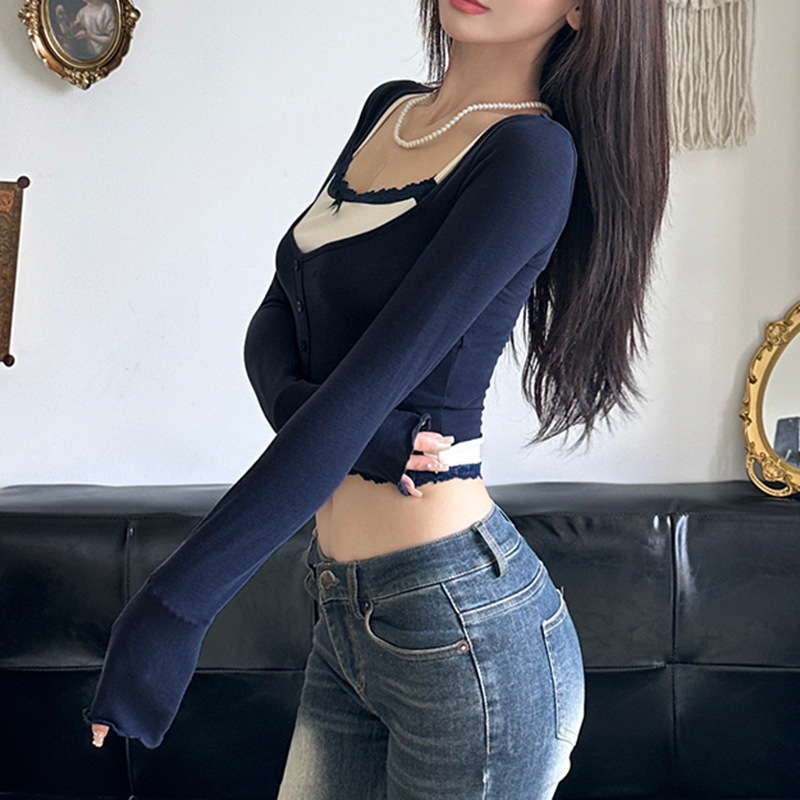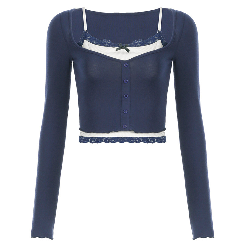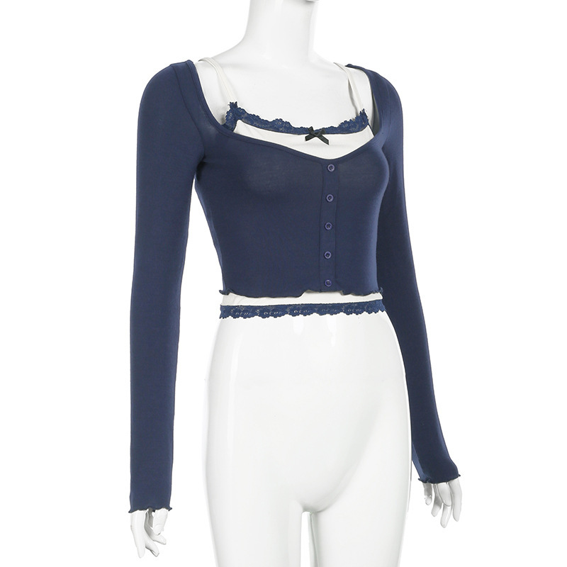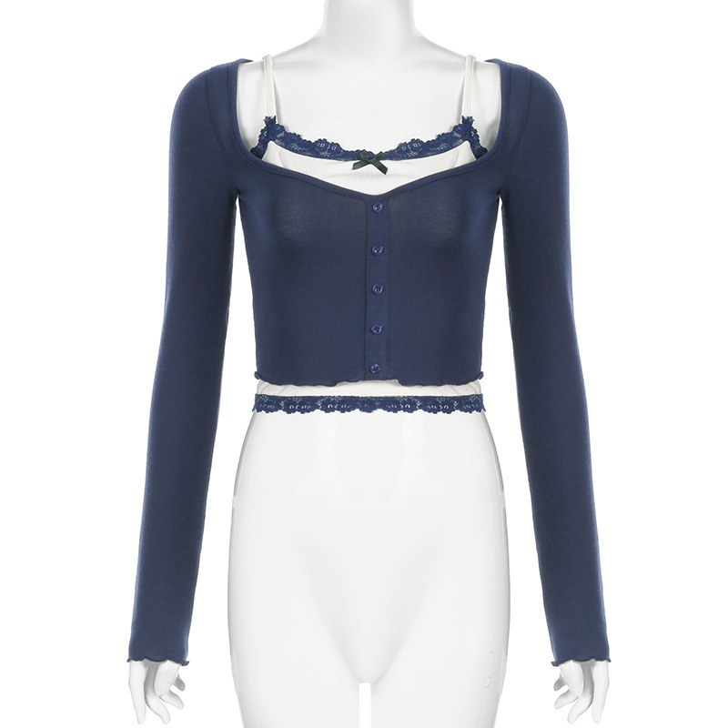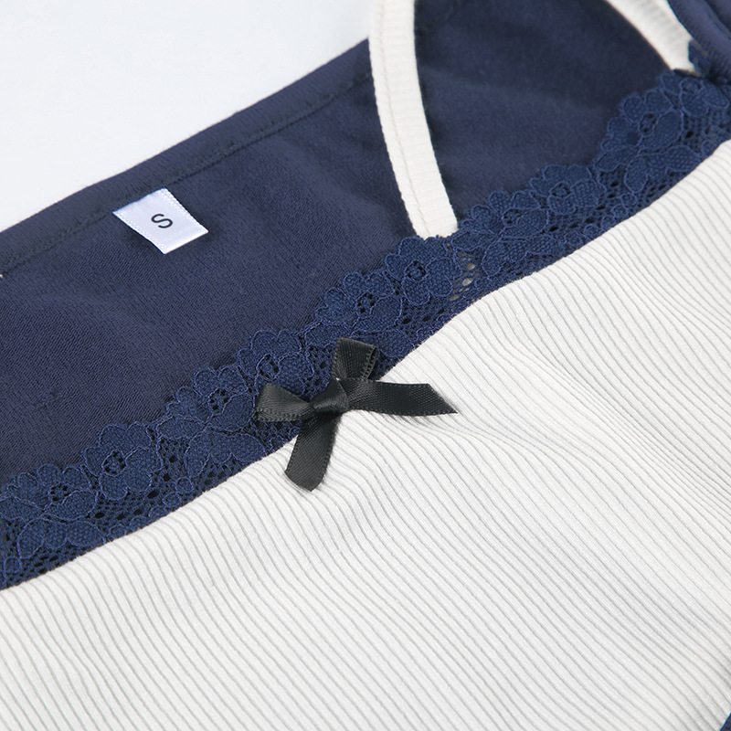 Lace-Panel Bow-Trimed Camisole With Long Sleeves