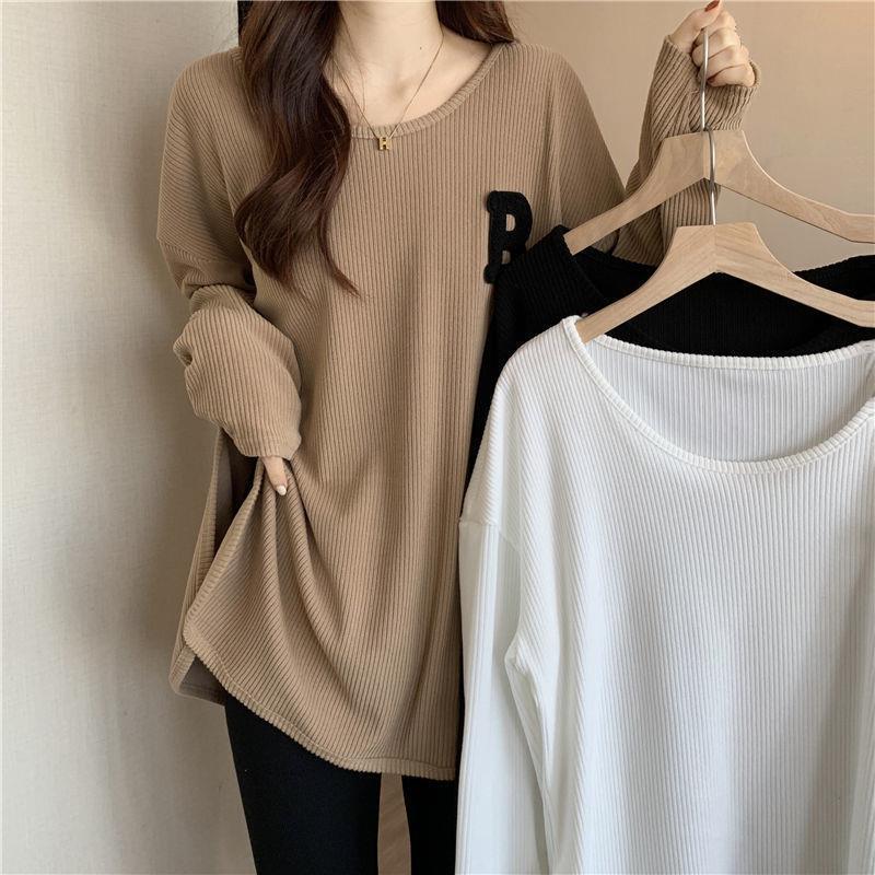 New Relaxed-fit, Slimming, Western-style, Versatile Embroidered Plus-size Base Top