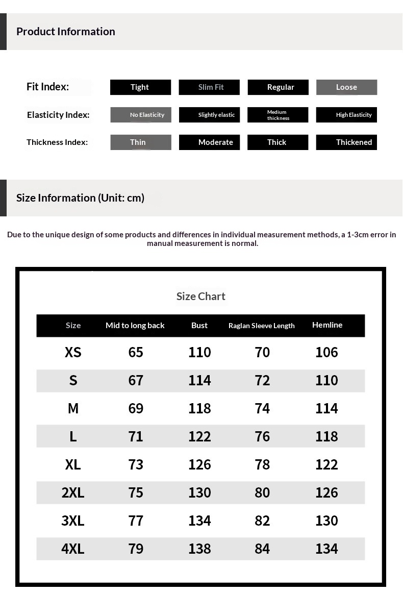 Sizes: XS, S, M, L, XL, 2XL, 3XL, 4XL