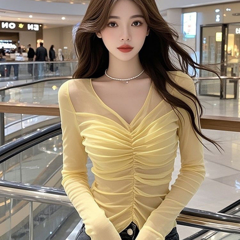 Short Top With A Multi Layered Ruffled Mesh Design Shirt