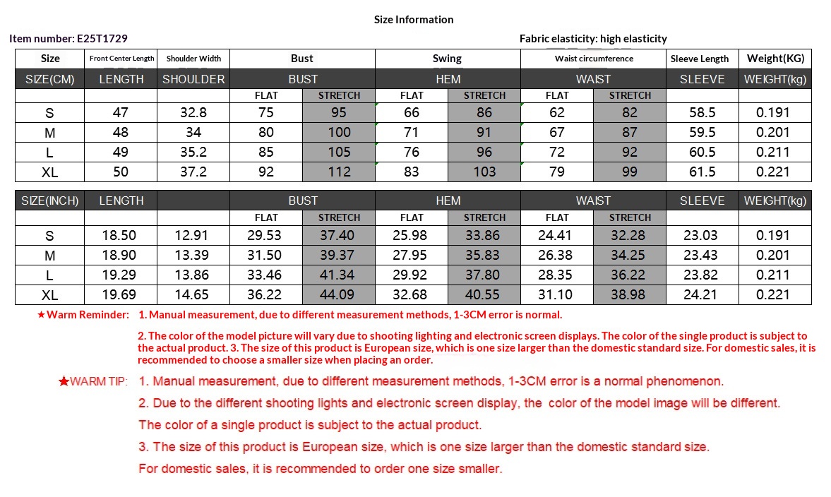 1. Asian sizes are 1 to 2 sizes smaller than European and American people. Choose the larger size if your size between two sizes. Please allow 2-3cm differences due to manual measurement. 2. Please check the size chart carefully before you buy the item, if you don't know how to choose size, please contact our customer service. 3.As you know, the different computers display colors differently, the color of the actual item may vary slightly from the following images.