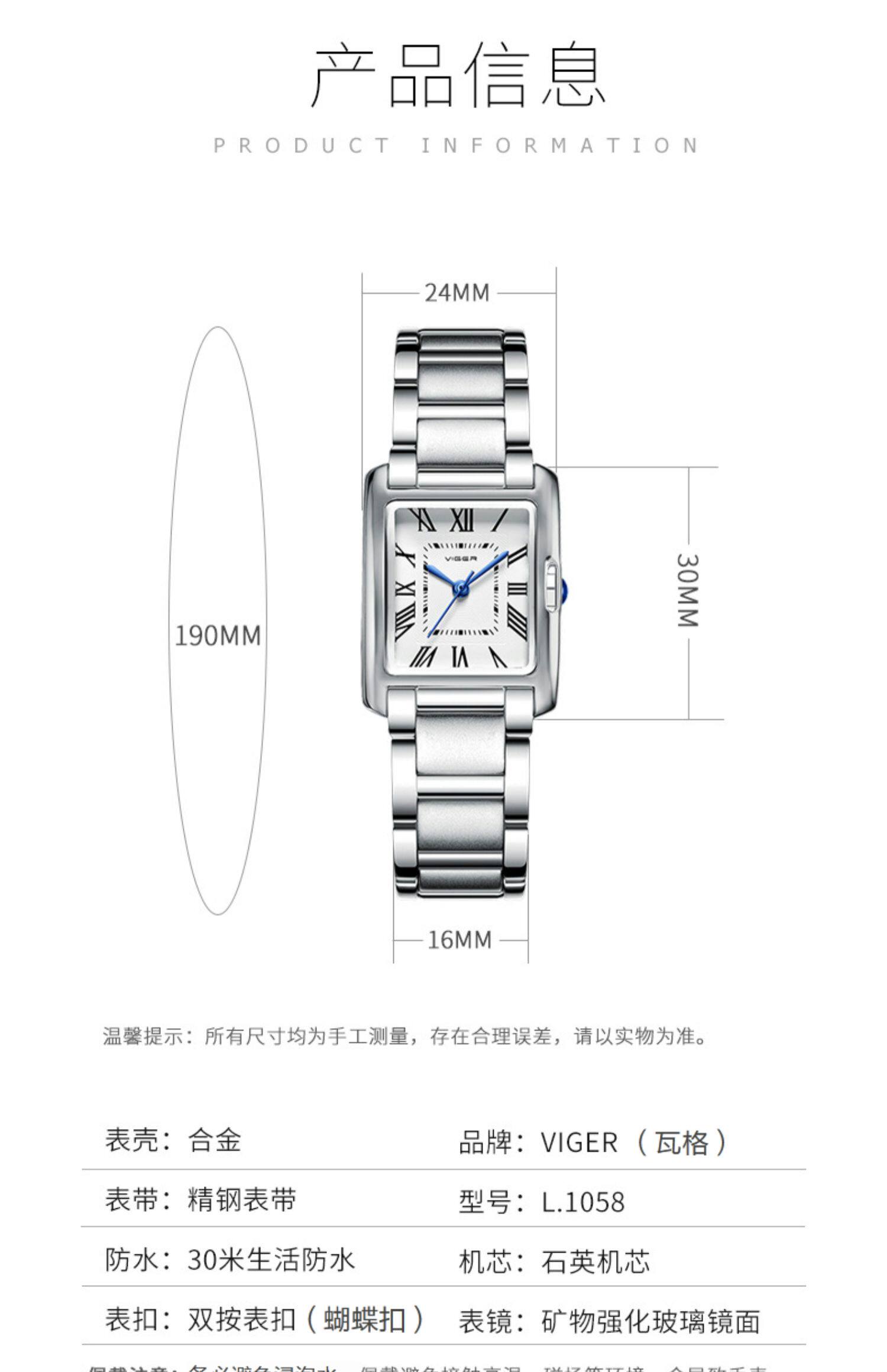 Vagran Needle Square Womens Retro Fashion Small Square Watch