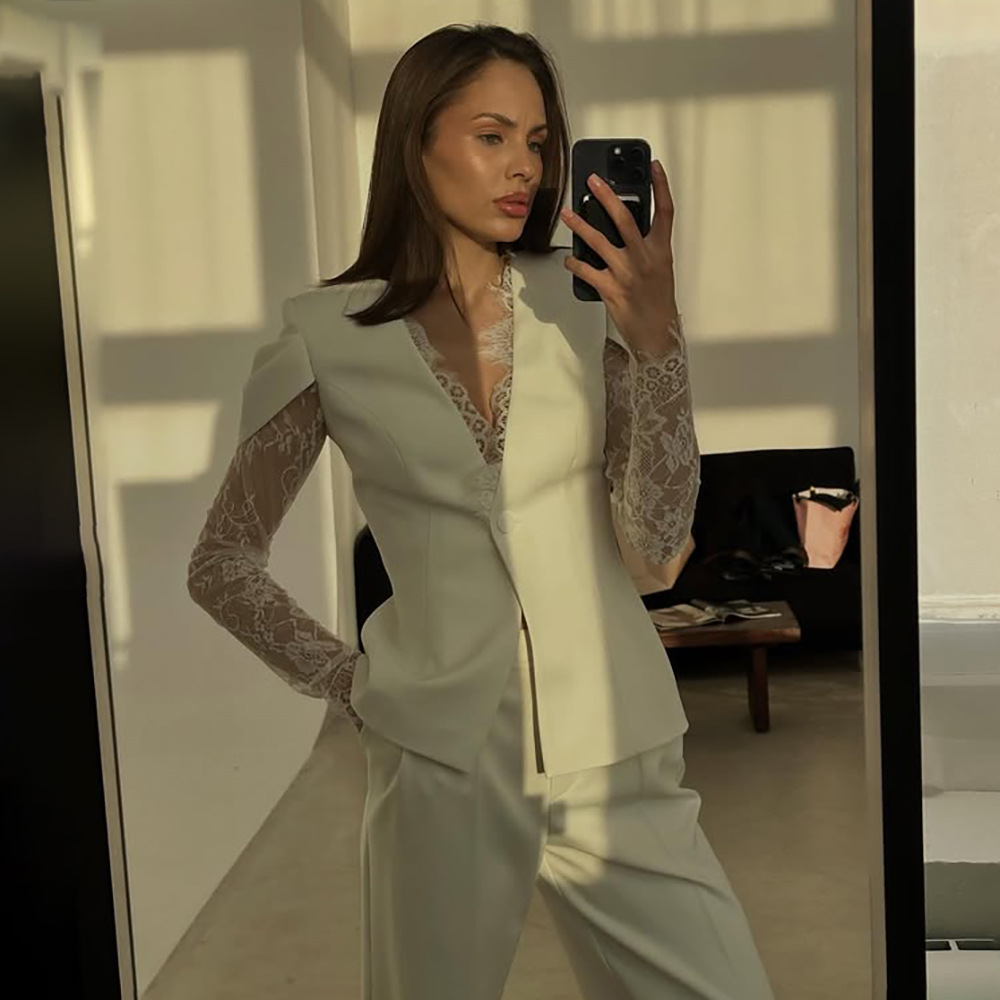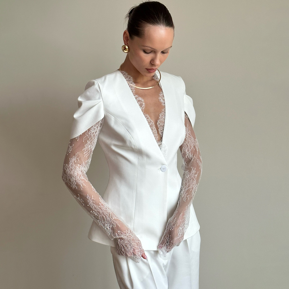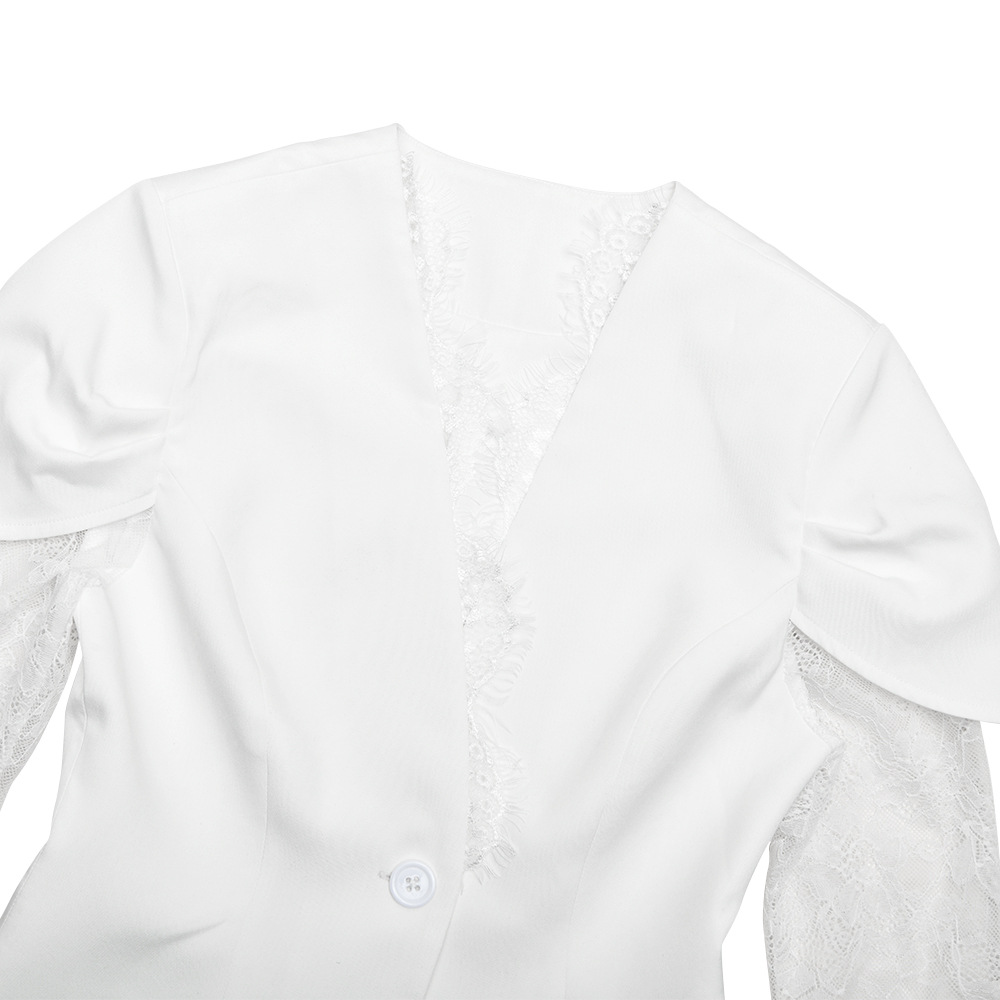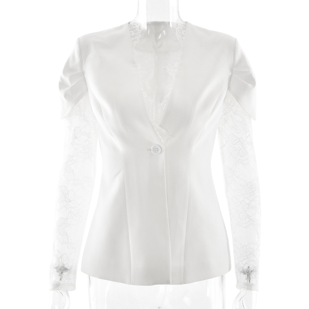 Womens Lace-Panel Single-Buckle Blazer