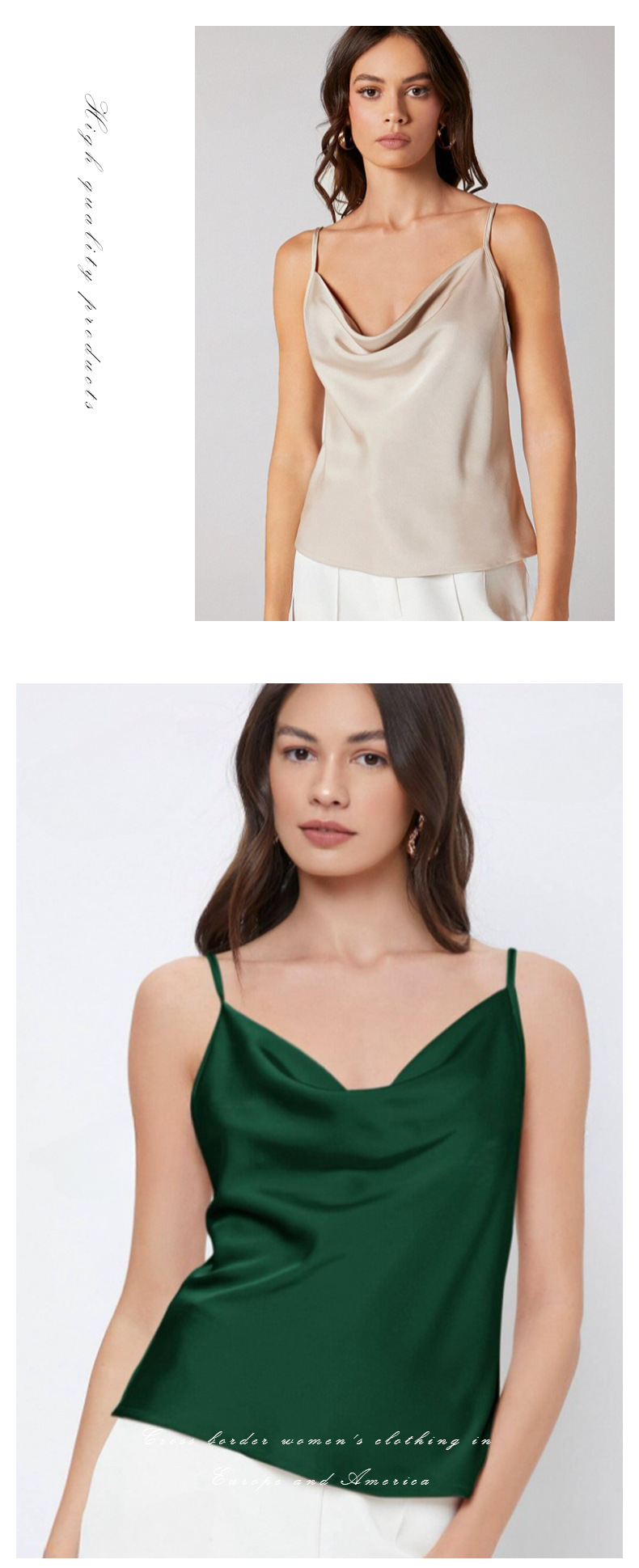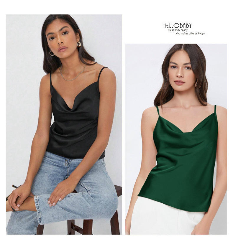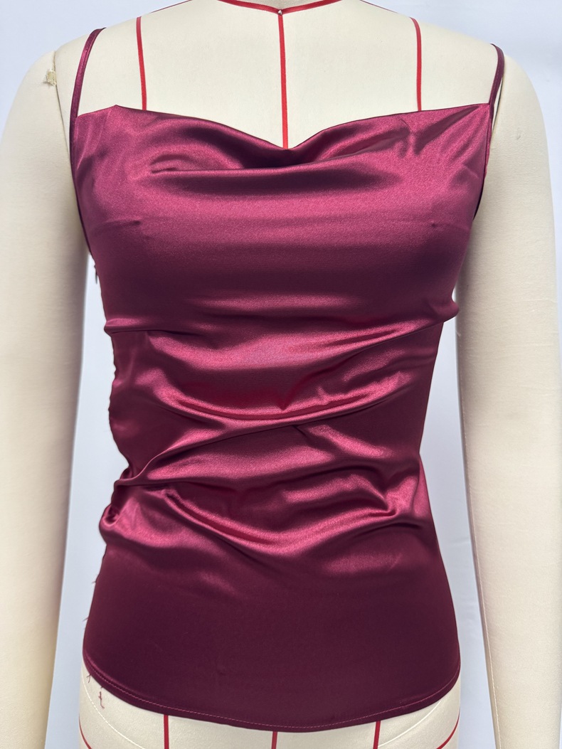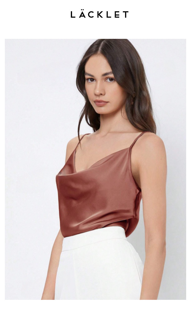 Womens Solid-Color Casual Rayon Satin Camisole